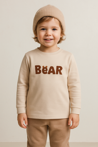 Bluzka bawełniana Bear Bambarillo ecru dla dzieci | Długi rękaw, elastyczna
