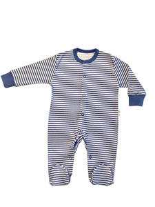 Mamatti PA13640 – pajacyk dla niemowlęcia, granatowy w paski, ze stópkami, bawełniany