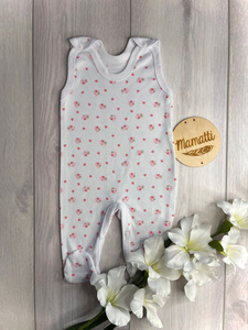 Mamatti PG15215 – półśpiochy niemowlęce białe w listki, z wysokim stanem