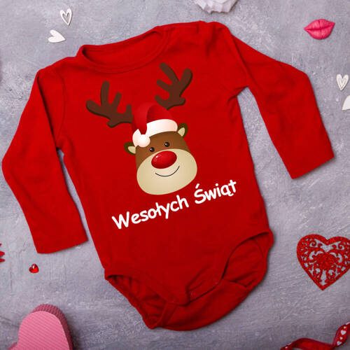 Body długi rękaw "Wesołych Świąt życzy + imię" Moocha czerwony