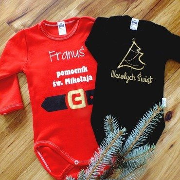 Body długi rękaw "Pomocnik św. Mikołaja z imieniem" Moocha czerwony