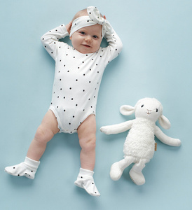 Body z długim rękawem dla dziewczynki Tres Bien Pinokio - ecru groszki