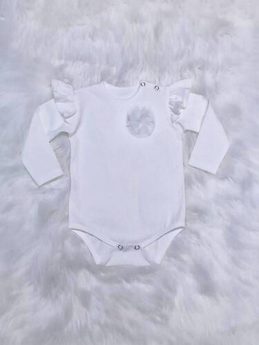 163535 Magia Świąt Body z długim rękawem Nicol - biały/ falbanka