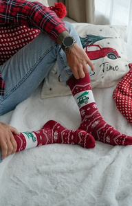 SKCH01 Be Snazzy czerwony 3– damskie skarpety świąteczne, bawełna, różne wzory
