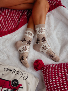 Milena 1283-040 – świąteczne skarpetki damskie z motywem ciasteczek, beżowy