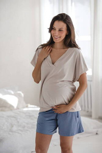 Bambusowa bluzka od piżamy ciążowej do karmienia długi rękaw Moon Milk&Love beżowy