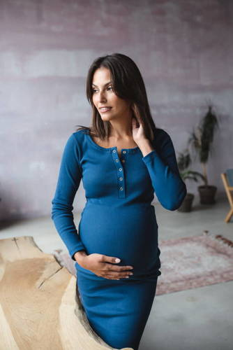 Sukienka ciążowa i do karmienia z dzianiny w prążek Tummy Milk&Love poseidon