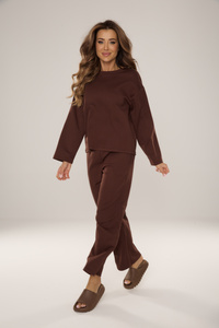 De Lafense 886 Butter – damski dres z dzianiny „masełko”, spodnie i bluza, czekoladowy