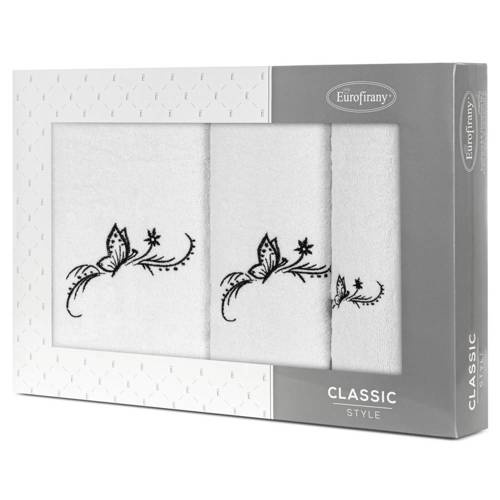 Komplet ręczników Kamelia z haftem z motywem motyli Eurofirany biały/czarny