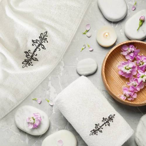 Komplet ręczników Kamelia z haftem z motywem ornamentu Eurofirany biały/czarny