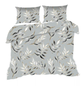 31510/1 Darymex Flanelove szara zielona liście miłorzębu– komplet pościeli flanelowej, 100% bawełna, ciepła i przytulna