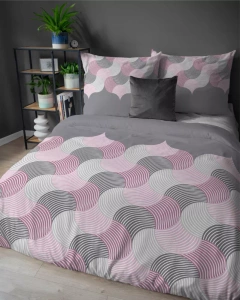 5631 B Detexpol Pastel Flowers szaro-różowe fale geometryczne– pościel flanelowa bawełniana, miękka i przytulna