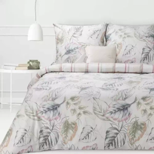 Pościel bawełniana Eufloria 012 kwiaty liście dwustronna Faro biały