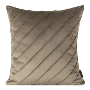 Poszewka z miękkiej szenilowej tkaniny ze skórzaną wstawką Eurofirany beżowy