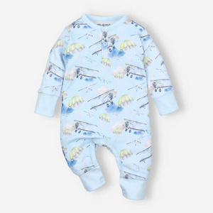 Body kopertowe z bawełny organicznej Samoloty Nini błękitny