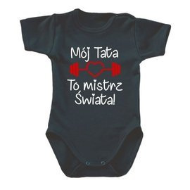"Mój tata to mistrz świata" body krótki rękaw Moocha czarny