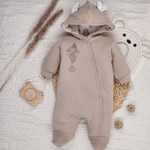 Beżowy pajac niemowlęcy Beary Cool Eevi – sweterkowy, z uszkami na kapturze