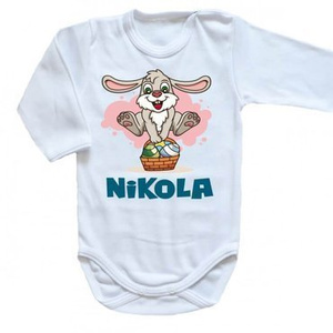 Body długi rękaw "Wielkanoc zajączek z koszyczkiem z imieniem" Moocha biały