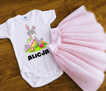 Body krótki rękaw "Wielkanoc zajączek z koszyczkiem z imieniem" Moocha biały