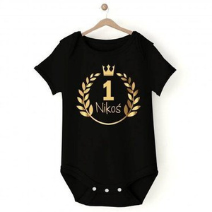 Body krótki rękaw "ROCZEK z imieniem" złoty napis Moocha czarny