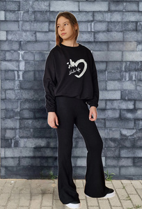Bambarillo czarny– spodnie dziewczęce dzwony, czarne, prążkowana dzianina, bawełna i elastan