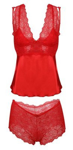 Helen Komplet satynowy Plus Size damski DKaren - czerwony