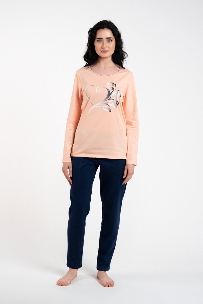 Piżama Damska długi rękaw, spodnie Arietta Italian Fashion - łosoś
