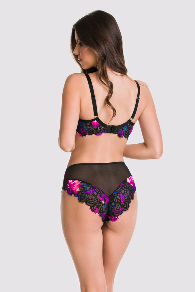 Figi pełne wykonane z tiulu. Boki i tył z koronki, z neonowym motywem.