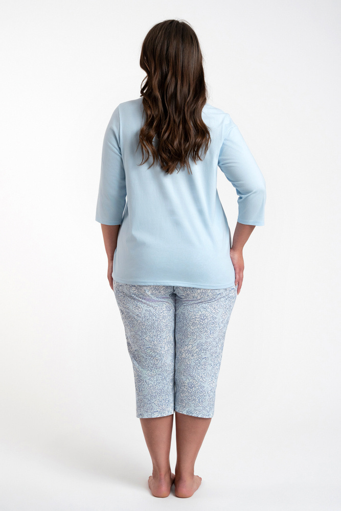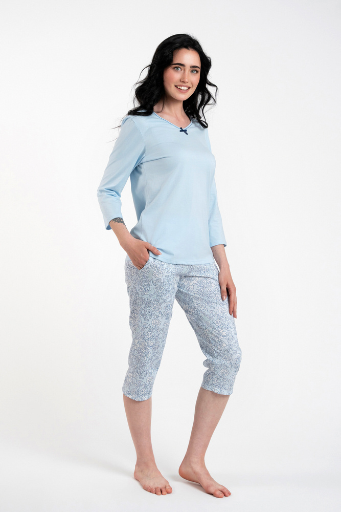 Piżama Damska 3/4 rękaw, 3/4 spodnie Salli Italian Fashion - niebieski/druk