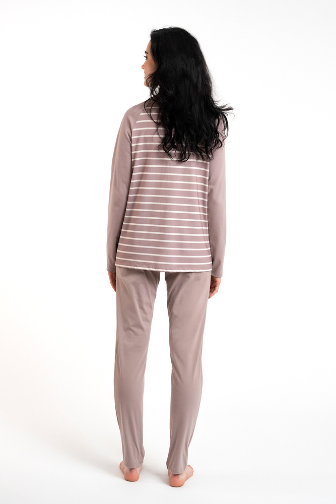 Piżama Damska długi rękaw, długie spodnie Oda Italian Fashion - druk cappuccino/cappuccino