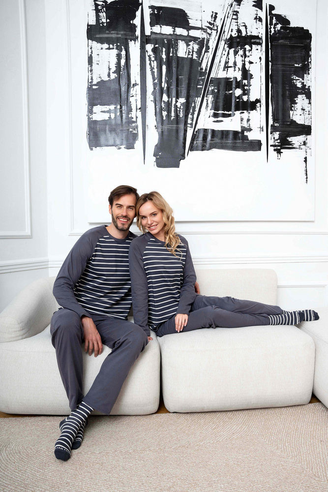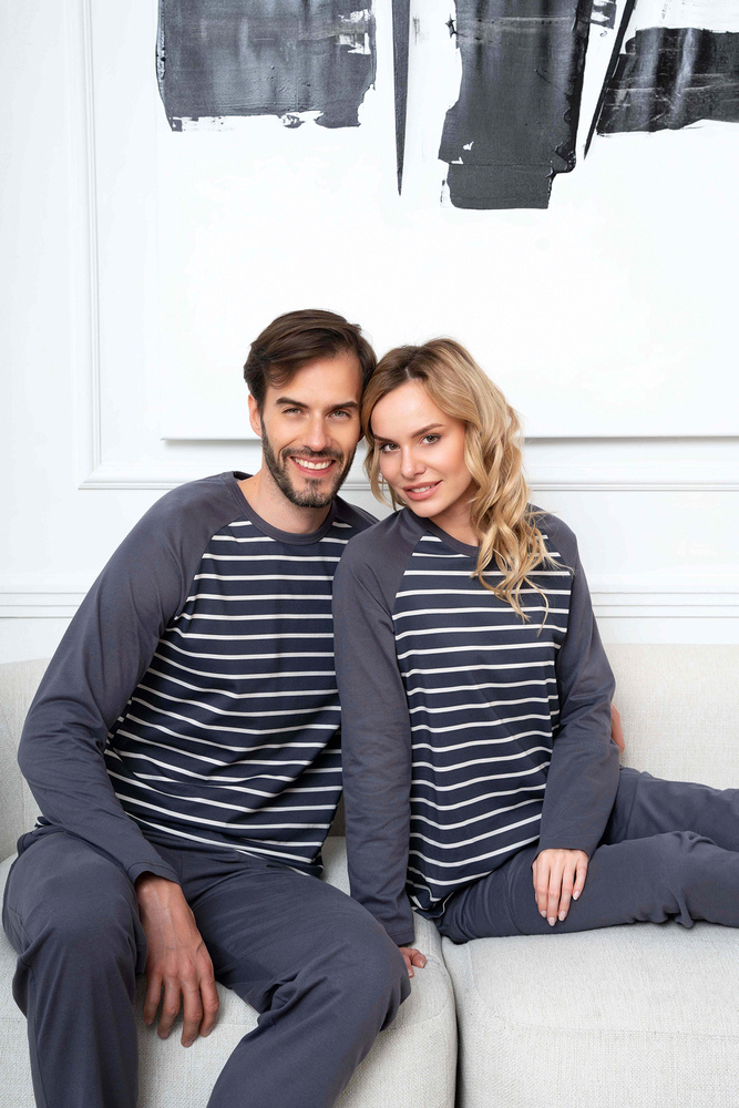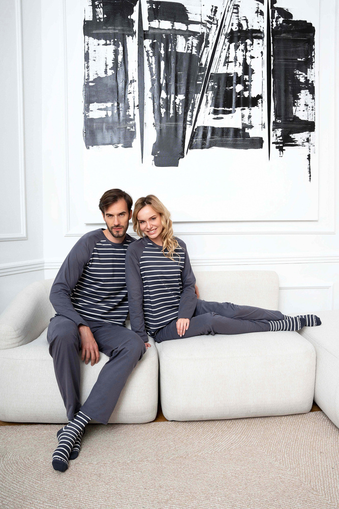 Piżama Męska długi rękaw, długie spodnie Lars talian Fashion - druk grafitowy/grafitowy