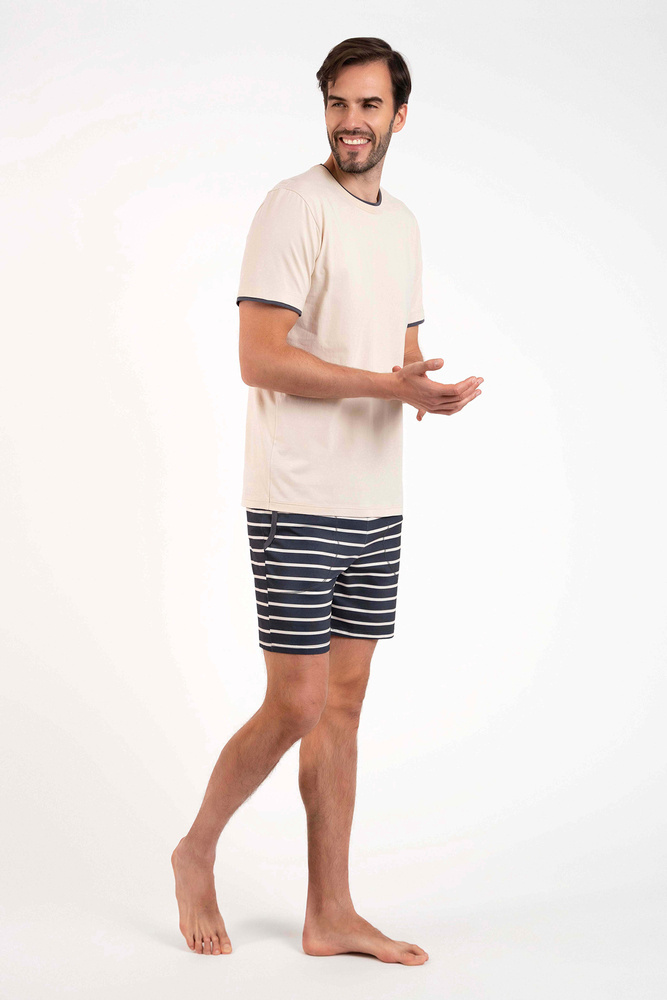 Piżama Męska krótki rękaw, spodenki Lars talian Fashion - beżowy/druk grafitowy