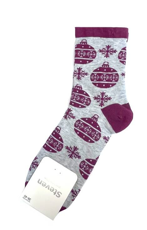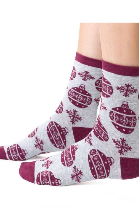 ART.136 Skarpety świąteczne damskie Steven 098 szary jasny melanż