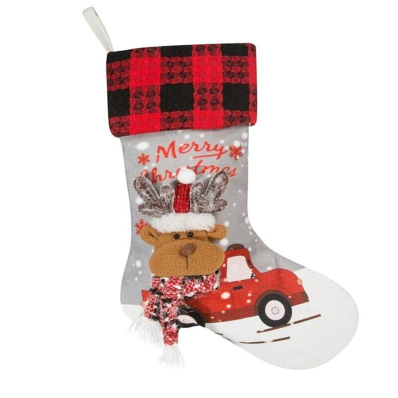Skarpeta świąteczna but Renne 2 Eurofirany szary/czerwony