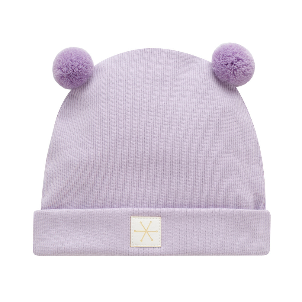 Czapka niemowlęca w modnym kolorze, uszyta z bawełny.