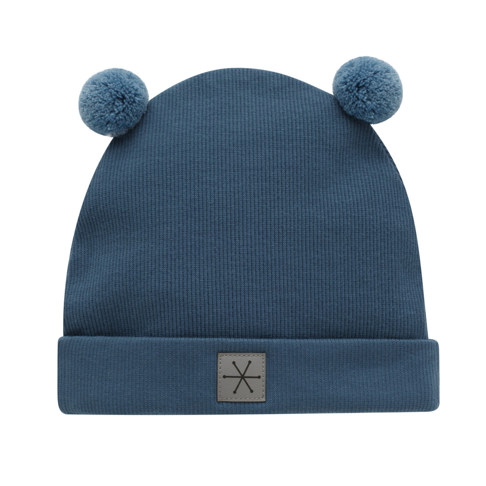 Czapka niemowlęca w modnym kolorze, uszyta z bawełny.