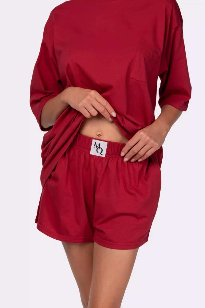 Model z oversizową, wygodną koszulką oraz krótkimi spodenkami podkreślającymi nogi. Spodenki mają nieco wyższy stan oraz szeroką gumę w pasie. Wykonana z niezwykle delikatnej i przewiewnej bawełny, zapewniającej komfort podczas snu.
