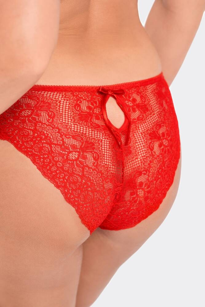 Figi damskie z delikatnej mikrofibry. Przód wykonany z gładkiej mikrofibry, tył koronkowy.