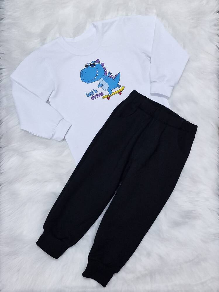 Ozdobiona nadrukiem. Stylizację uzupełniają spodnie.