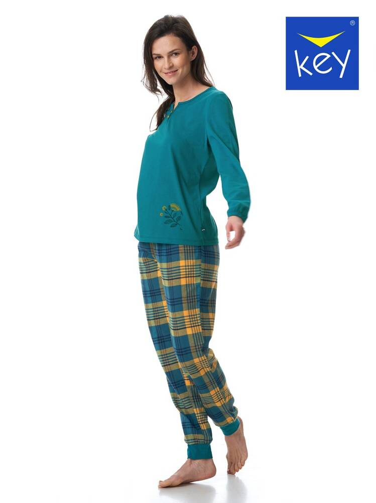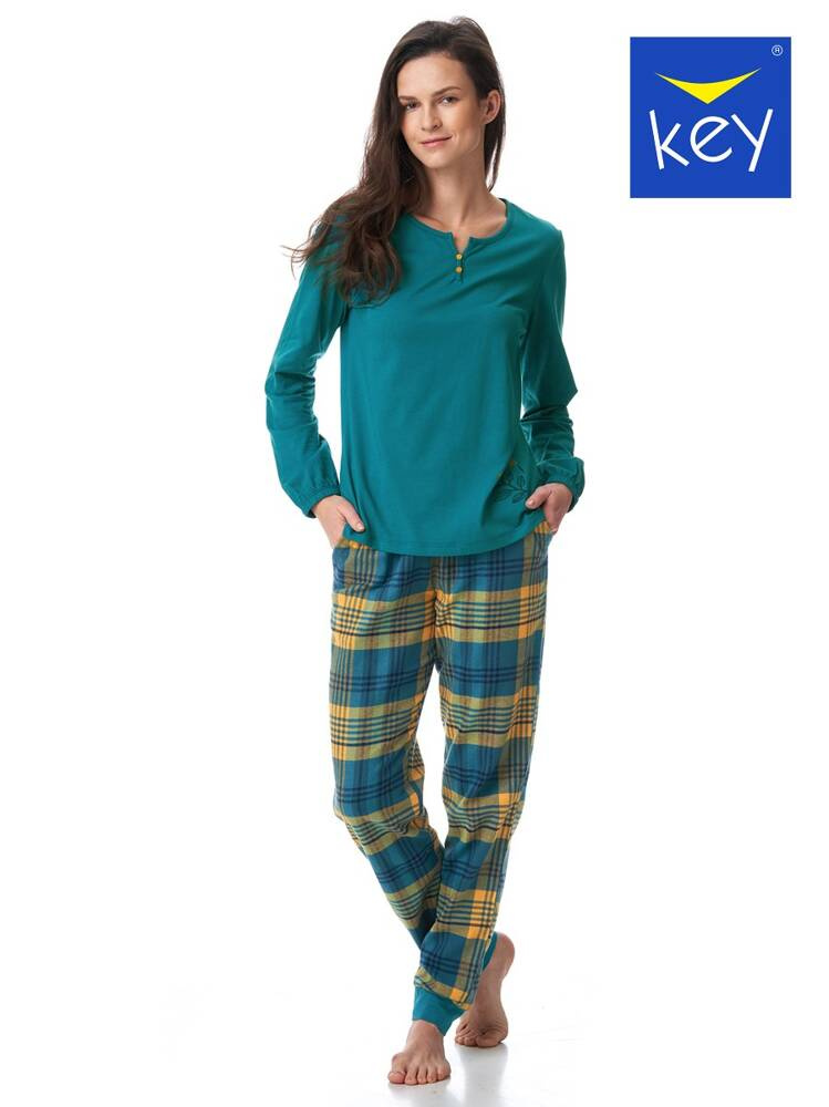 Rozpinana Piżama Damska LNS 408 Key - zielony/kratka