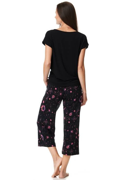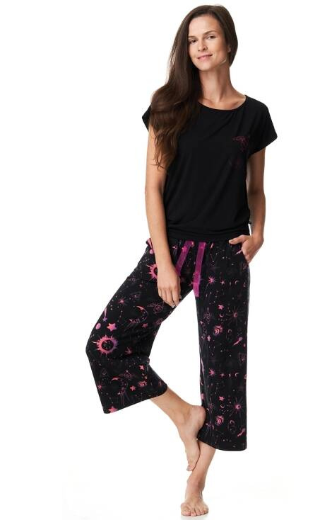 Piżama damska wykonana z wysokiej jakości bambusa i bawełny. Koszulka z krótkim rękawem i aplikacją.