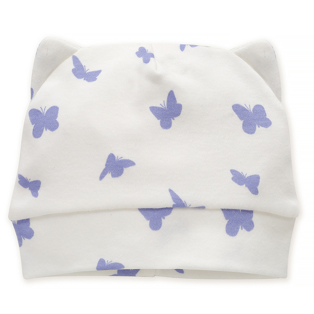 Czapka wiązana w delikatnym kolorze uszyta z bawełny.