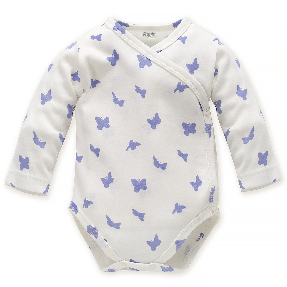 Zapinane kopertowo. Na jednym boku znajdują się zapięcia na napy, spodnia część przodu wiązana jest bawełnianą tasiemką.