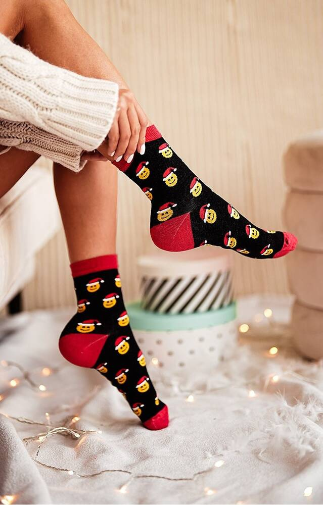 1283-011 Emotki Świąteczne Skarpety damskie Milena - 04 czarny