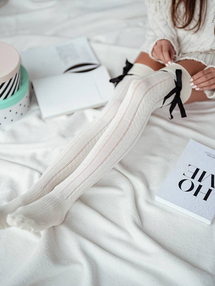 835 Wstążka Zakolanówki damskie Milena - ecru