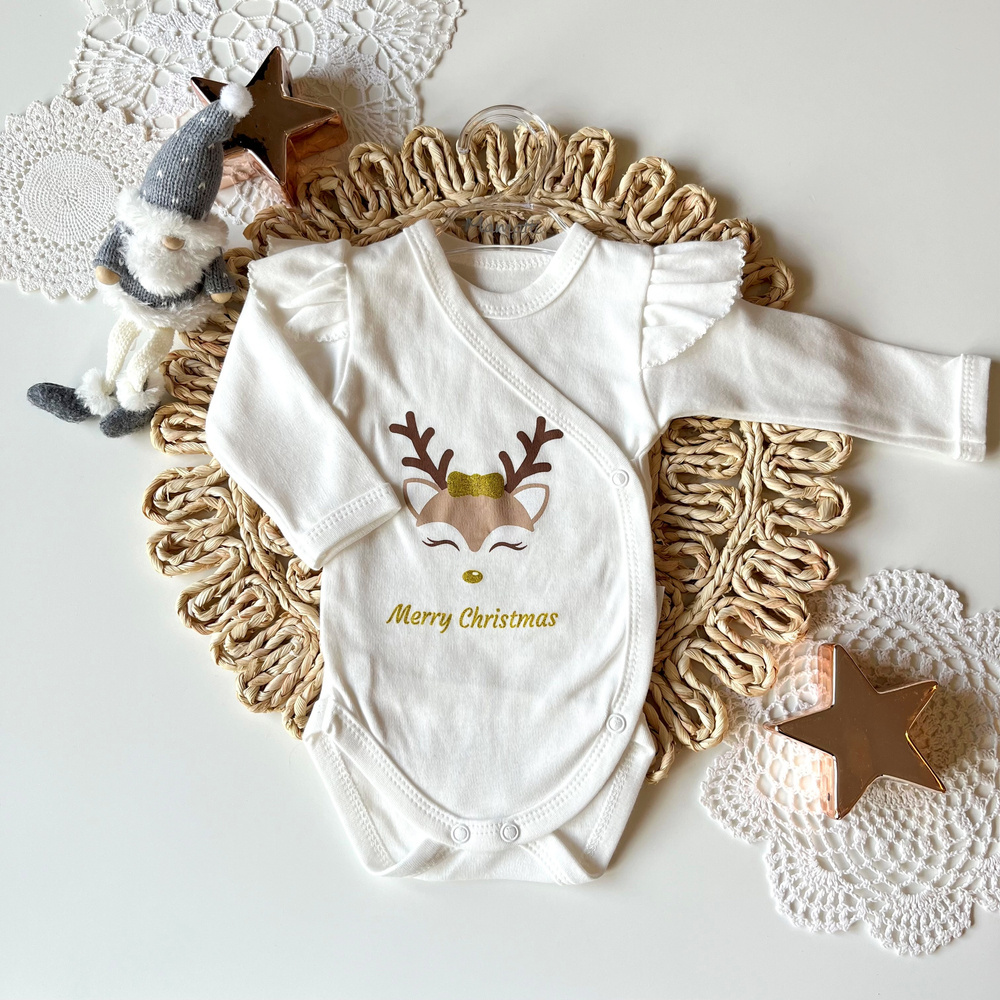 Body kopertowe z długim rękawem 23BD03 Merry Christmas Mamatti - ecru