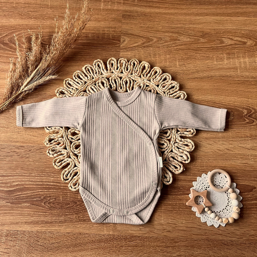 Body kopertowe z długim rękawem BDAB015 EkoBaby Mamatti - beżowy