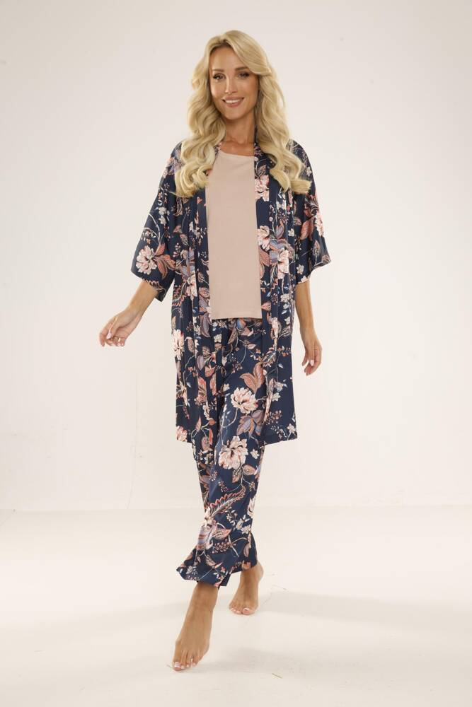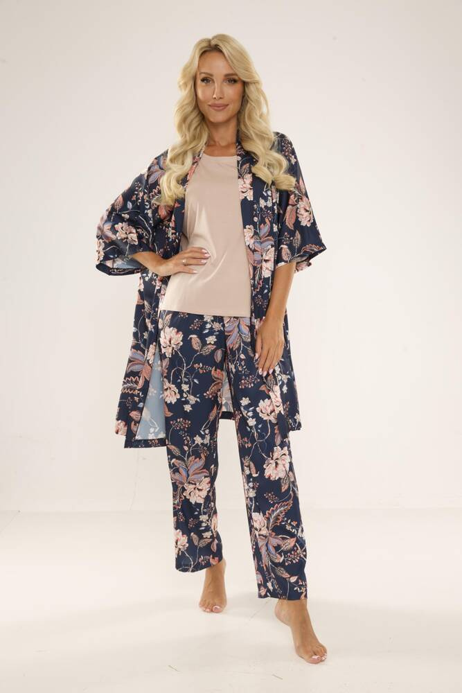 Dwuczęściowa piżamka firmy De lafense wykonana z wysokogatunkowej satyny. Idealna na dobry sen i na wspaniały początek dnia przy pierwszej porannej kawie. Dopasowana do ciała bluzka z krótkim rękawem, nie krępuje ruchów i ładnie podkreśla sylwetkę. Dekolt okrągły. Spodnie długie, w pasie wykończone gumką. Przyjemna w dotyku piżama, utrzymana jest w ciekawej kolorystyce.