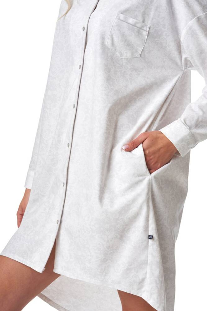 Koszula nocna rozpinana z przodu. Dzięki guzikom na całej długości można nosić ją także jako całodzienną ciepłą narzutkę.