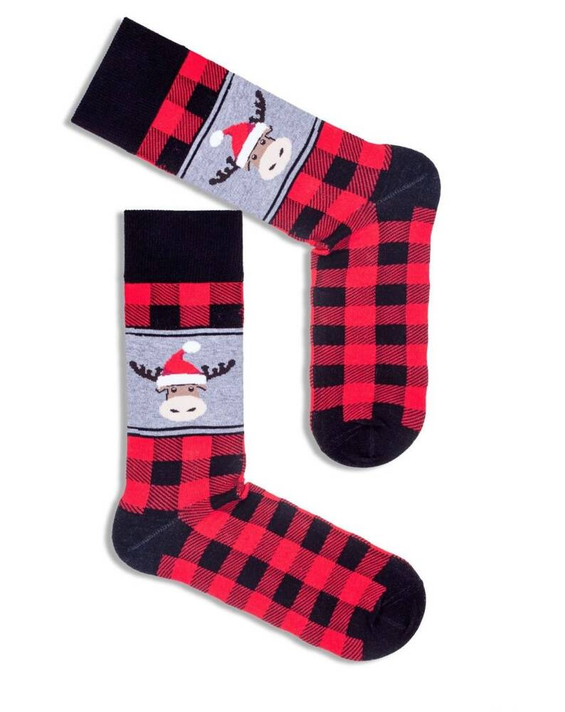 1290-002 Krata i Renifer Świąteczne Skarpety Męskie Milena - czerwony